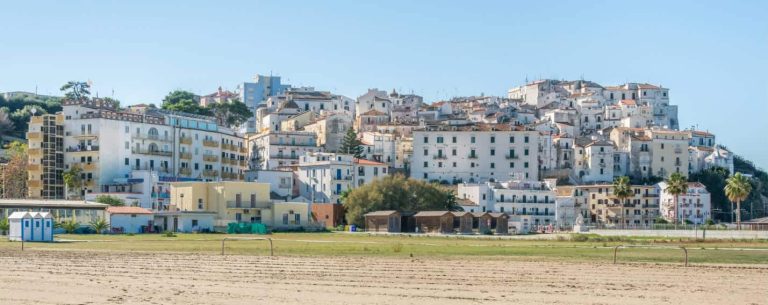 Il borgo è abbarbicato su un promontorio roccioso tra due lunghi arenili sabbiosi a pochi chilometri ad est del lago di Varano. È circondato da una lussureggiante vegetazione, composta soprattutto da agrumeti, oliveti e pinete, nonché da alberi di carrube e fichi. Il centro storico, come le mura di cui è cinto, è d'origine medievale ed è caratterizzato da vicoli stretti, in buona parte ripidi e con tracciati intricati, che si insinuano in un tessuto urbano costituito da case di uniforme aspetto architettonico, realizzate in modo tale che da ognuna sia possibile scorgere il mare.