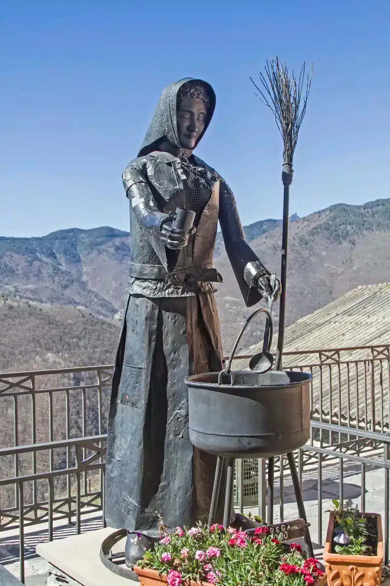 Il fascino misterioso di Triora non si limita alla sua storia oscura. Il borgo è diventato una meta di culto per gli amanti del mistero, dell’occulto e delle storie di stregoneria. La presenza di simboli legati alle streghe e ai gatti neri è diffusa in tutto il paese, in particolare sulle porte delle case, nelle vetrine dei negozi e nei cartelli delle locande e dei B&B. I visitatori possono trovare souvenir tipici come amuleti, pietre della fortuna, pozioni magiche e il celebre Filtro delle Streghe, un liquore artigianale alle erbe, considerato un omaggio alla tradizione locale.