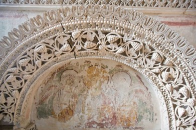 L’interno è suddiviso in tre navate: quella centrale con volta a botte, mentre le due laterali a crociera. Sulla parete interna della facciata proprio sopra il portale maggiore è posto il Monumento equestre di Marcantonio di Manzano, condottiero cividalese, appartenente alla nobile famiglia dei di Manzano, morto eroicamente nel 1617 durante l’assedio di Gradisca. La scultura, in legno laccato, fu commissionata dai cividalesi nel 1621 ed è opera di Girolamo Paleario. Sopra le porte si trovano quattro lapidi, che ricordano alcuni momenti salienti della storia del Duomo e ne celebrano i benefattori.