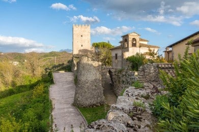 Elemento unico nel panorama archeologico italiano è l’arco a sesto acuto, una porta ogivale alta oltre 4 metri, risalente al VII-VI secolo a.C., che richiama le tecniche costruttive micenee e che rappresenta un unicum in tutto il Mediterraneo. Questo varco, vero simbolo dell’antichità arpinata, costituisce ancora oggi l’accesso principale all’Acropoli, affiancato da torri, bastioni e mura medievali successivamente aggiunti.