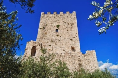 Sulla rocca svetta la cosiddetta Torre di Cicerone, torre quadrangolare in pietra costruita in epoca tardo-normanna o sveva, erroneamente ritenuta in passato legata alla famiglia del grande oratore romano. La torre rappresentava il fulcro del sistema difensivo medievale, con fossati, cammini di ronda e una cinta muraria rinforzata. Oggi è visitabile e offre un panorama mozzafiato sulla Valle del Liri, sulle colline circostanti e sull’intero borgo di Arpino.