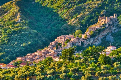 Il Castello di Cleto ha un’origine antica. I normanni costruirono l’abitato lungo le pendici del monte Sant’Angelo alla cui cima edificarono un castello che domina la valle fino al mare.. Del castello colpiscono due torri maestose cilindriche, la prima destinata alla difesa, sorvegliava a sinistra il ponte levatoio. All’interno un’ampia cisterna raccoglieva l’acqua piovana che poteva servire per dissetare; mentre un’altra vasca posta sottoterra e coperta poteva contenere molte derrate alimentari. L’altra torre divisa in due era destinata alla difesa della parte superiore, mentre la parte inferiore ad abitazione del barone.
