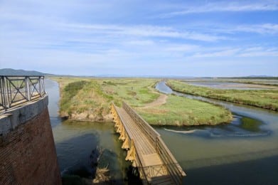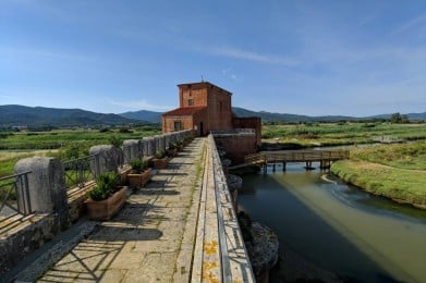 Simbolo della riserva è la suggestiva Casa Rossa Ximenes, progettata nel 1767 dall’ingegnere e gesuita Leonardo Ximenes per regolare il deflusso delle acque tra palude e mare. L’edificio, oggi museo multimediale, rappresenta il cuore storico e scientifico dell’area, testimoniando i grandi interventi di bonifica voluti dai Lorena nel XVIII secolo per combattere l’impaludamento e la malaria.