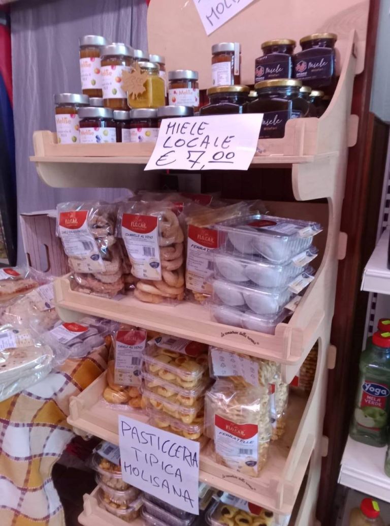 Sugli scaffali si trovano infatti le eccellenze locali, come la birra agricola Malto Lento, le composte e i succhi ottenuti dalle mele biologiche di Castel del Giudice, e il miele millefiori dell’Apiario di Comunità, frutto del lavoro collettivo degli apicoltori del borgo. Ogni prodotto racconta una storia di comunità, natura e innovazione sociale, diventando simbolo di un territorio che ha scelto di rigenerarsi attraverso la valorizzazione delle proprie risorse.