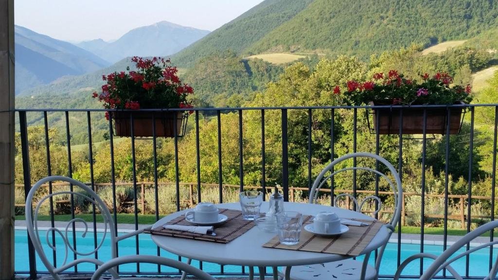 A 750 metri d’altitudine, l’agriturismo domina la valle del fiume Nera offrendo un panorama che si estende fino alla Cascata delle Marmore. La piscina panoramica è un luogo privilegiato da cui ammirare questa vista spettacolare, trasmettendo una sensazione di pace e serenità.