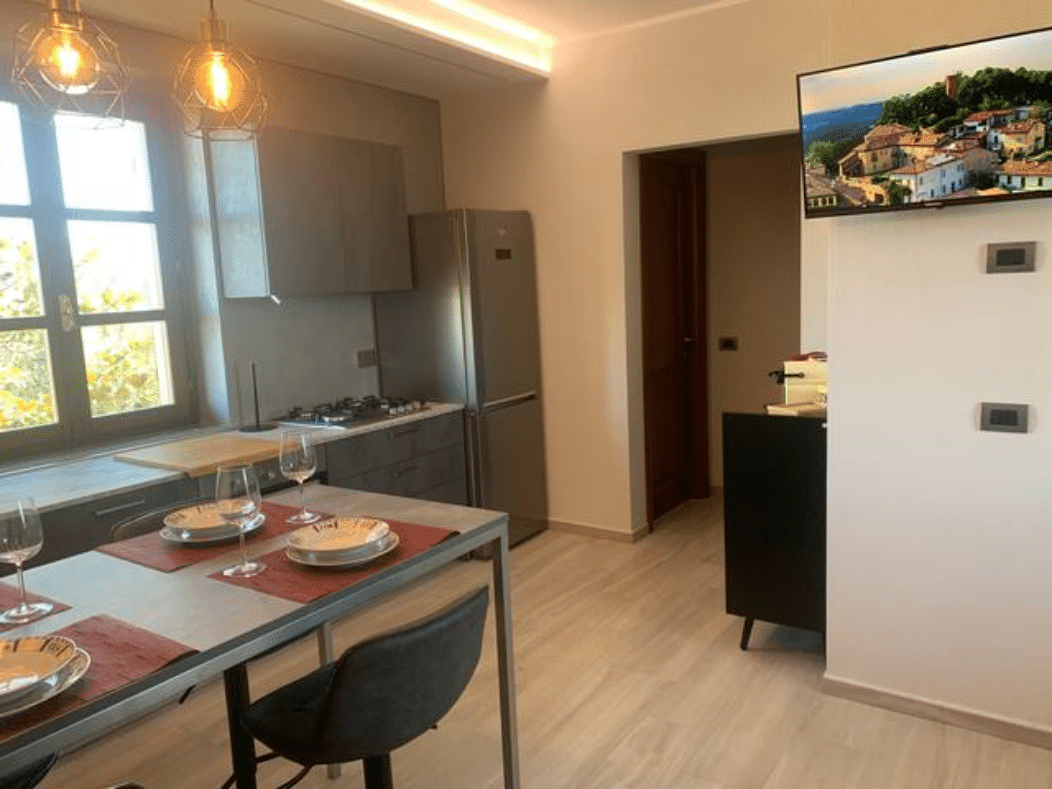 L’appartamento, completamente arredato, è dotato di ogni comfort per garantire un soggiorno piacevole e confortevole. La vista sulle montagne dalla terrazza è impagabile, e si può godere del panorama anche dal giardino privato dell’appartamento.