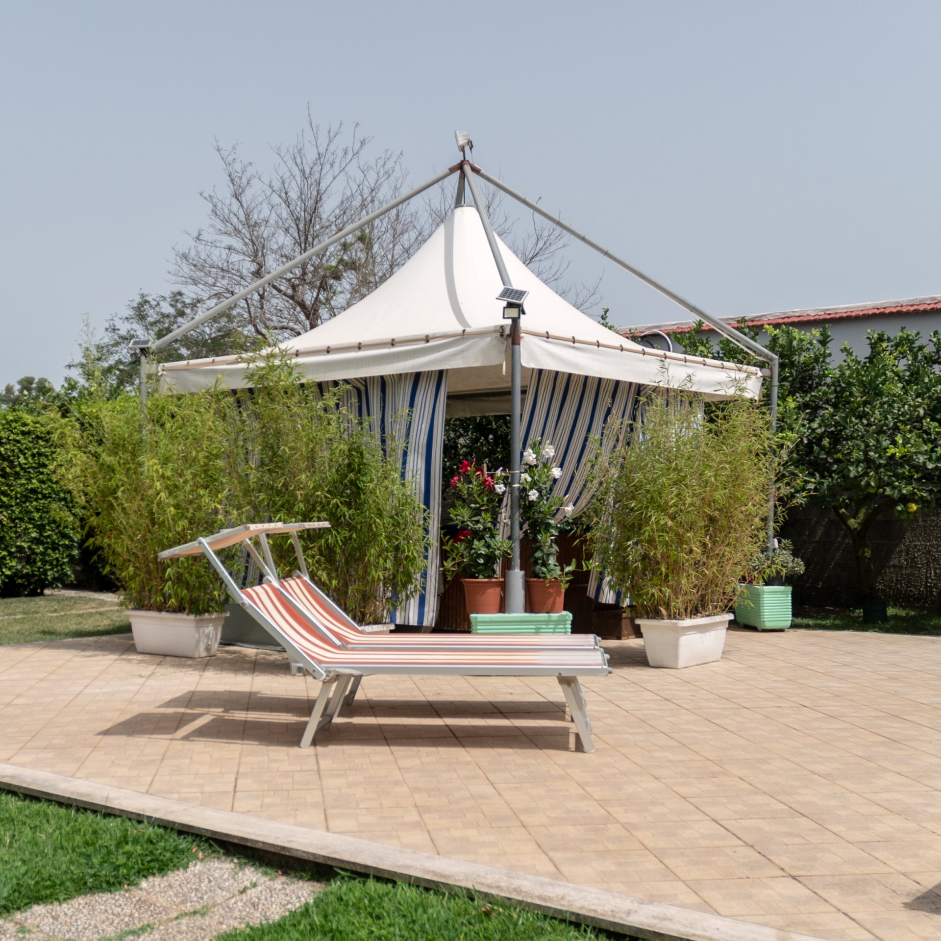 Tutte le sistemazioni si affacciano sul meraviglioso giardino che cinge l’intera struttura. Chi vuole sentirsi coccolato come un principe può invece optare per la Suite Deluxe Narciso, dotata persino di un salottino, un giardino privato e una doccia emozionale con luci soffuse.