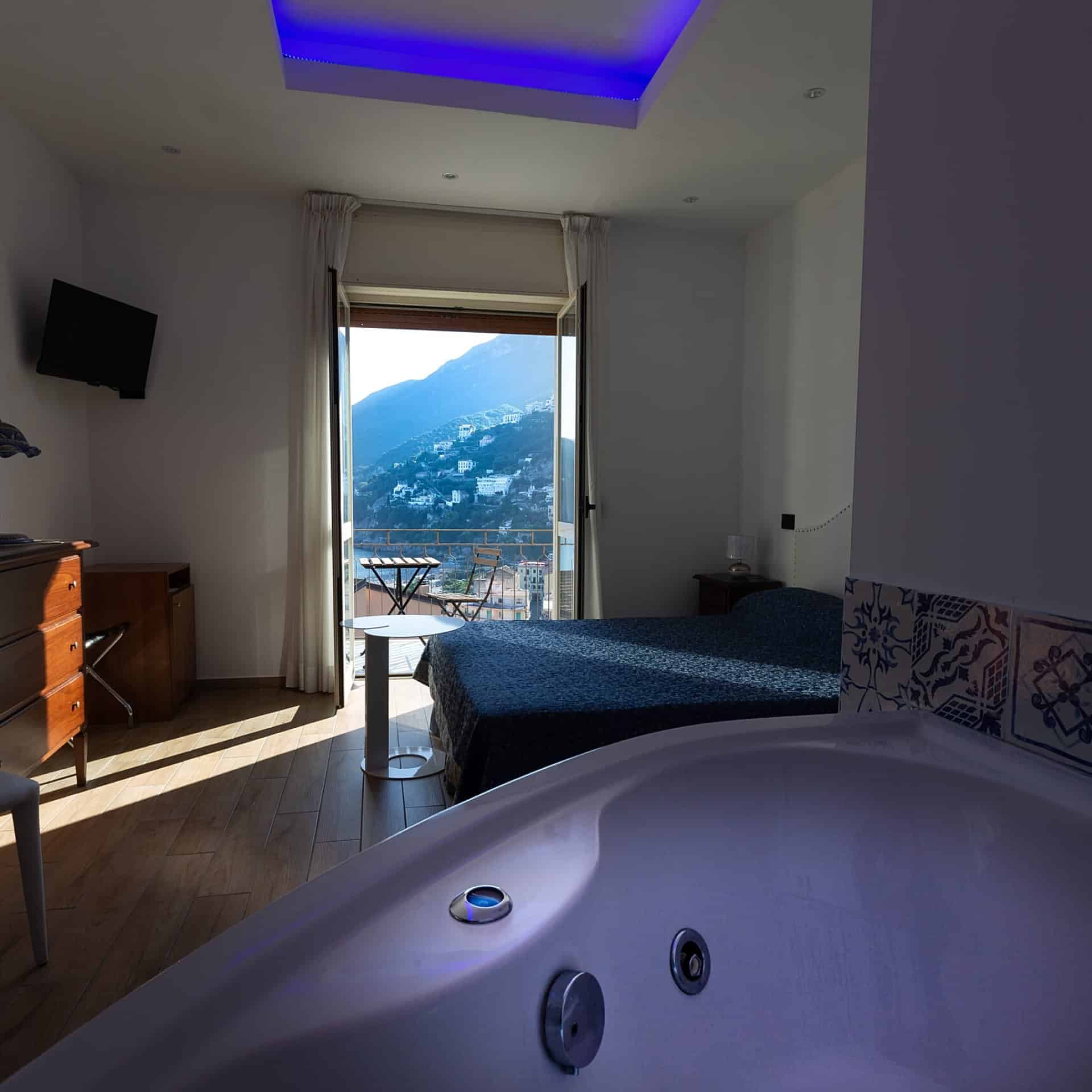 This beachfront suite has a 35-square-meter area and a balcony with seating that will allow you to enjoy a view of the sea and sella seventh wonder: the Amalfi Coast.