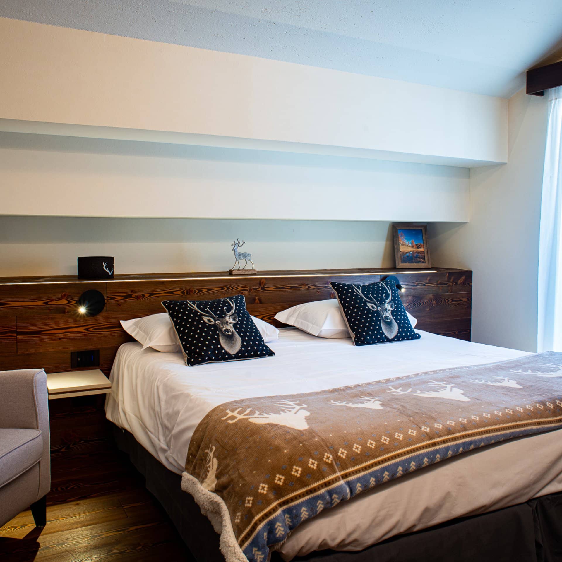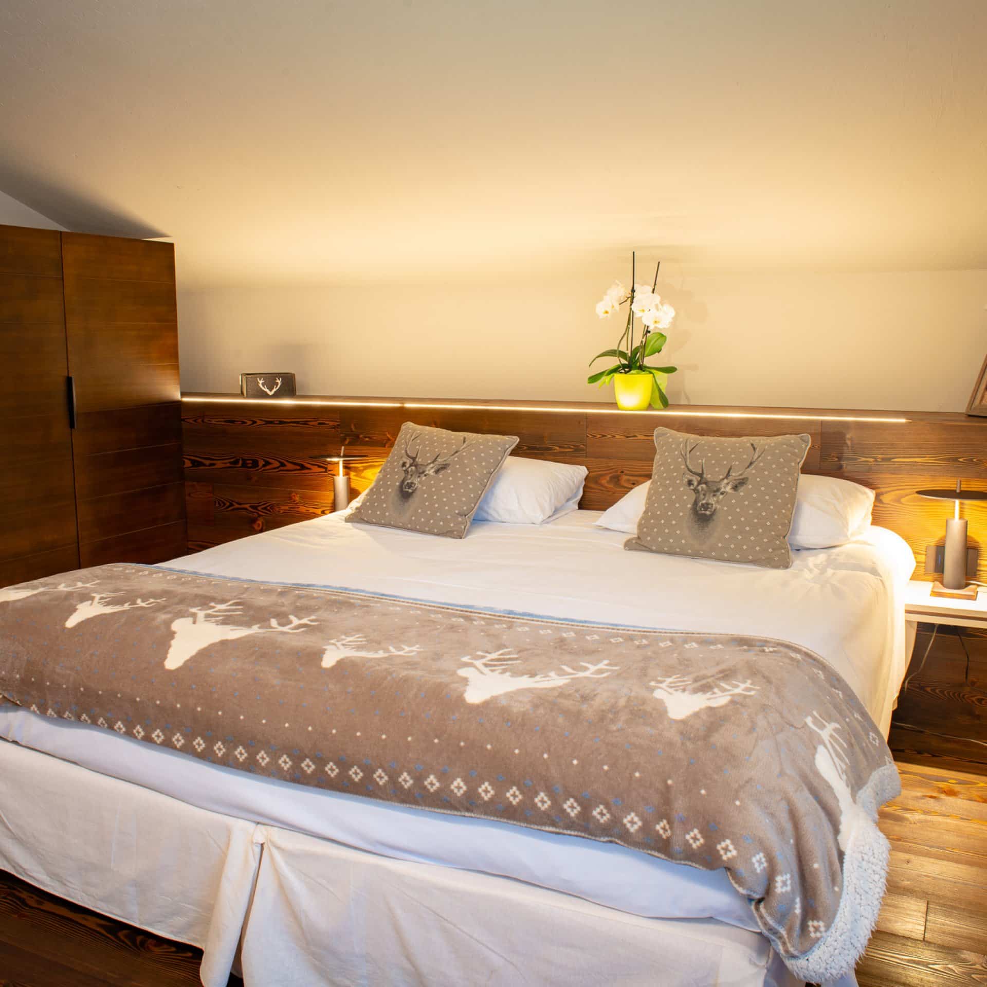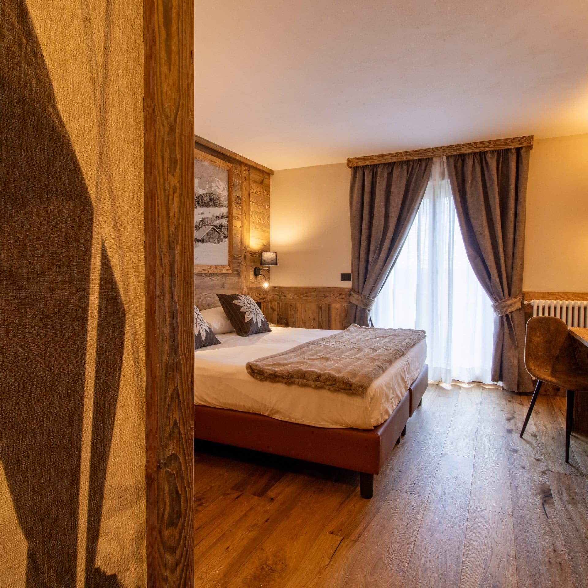 Our spacious, newly renovated double bedroom: a room dominated by fragrant wood and the warmth that only a mountain atmosphere can offer, ensuring you the best possible stay.