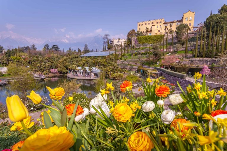 The Gardens of Trauttmansdorff Castle in Merano stretch out in the sun on a total surface of twelve hectares and bring together in a natural amphitheater an incredible variety of landscapes and vegetation, breathtaking views of the surrounding mountain scenery and the elegant Merano. “Picnìc al Laghetto delle Ninfee” is the new initiative organized by the Gardens of Trauttmansdorff Castle, which allows you to spend an original experience in the well-known Meran botanical garden. In the days of Friday 22 June, 13 July and 3 August 2018, in fact, by booking in advance your basket – containing dinner for two people – and starting at 18, you will have the opportunity to taste, under the palm trees of the Lake Water lilies, the delicacies of Markus Ebner, chef of the Schlossgarten Gardens restaurant. How come under the palm trees? Because Merano, thanks to its mild climate, boasts a spectacular vegetation, a mixture of Alpine and Mediterranean seductions. An author’s setting for a real déjeuner sur l’herbe, all to be enjoyed after visiting the Gardens of Trauttmansdorff Castle where you can get to know the typical South Tyrolean landscapes and landscapes, set up along the course of an artificial stream. In addition to an illustration of one of the traditional agricultural crops, the area also hosts an extensive cultivated orchard with ancient varieties of apples and pears. The vineyard, on the other hand, includes a dozen ancient, indigenous vines in addition to the Gewürztraminer, Schiava and Lagrein varieties. And to continue the journey in beauty, you can leave for villages of South Tyrol rich in history and curiosities like Tires, Glorenza and, for the triumph of peaks, Fiè allo Sciliar.