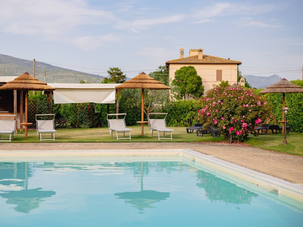 Outside the property you will find a large garden with lawn and gazebo where you can relax and enjoy the serenity of the Umbrian countryside. In addition, the little ones will have fun with games dedicated to them. There is also no shortage of barbecue equipment to organize delicious lunches or dinners in the open air. And the cherry on the cake is definitely the new exclusive swimming pool free for guests, perfect for a refreshing swim on hot summer days.