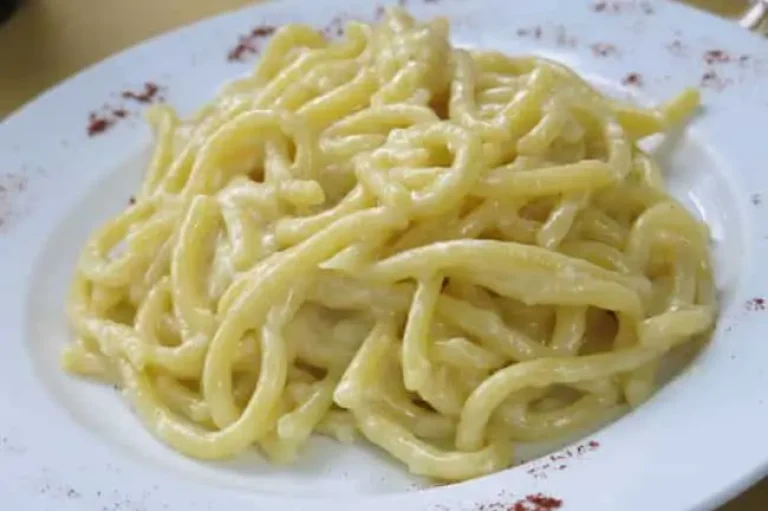 The recipe is simple because you will need only water, flour and a few eggs, or none at all according to other variants. While making it you must appiciare, as to say knead, the pasta with your hands by spreading it and rolling it until you will have a thick and long spaghetto. This version doesn’t have tomatoes, as it should be for the regular aglione, but it is seasoned with a delicious garlicky Pecorino sauce, typical of this village.