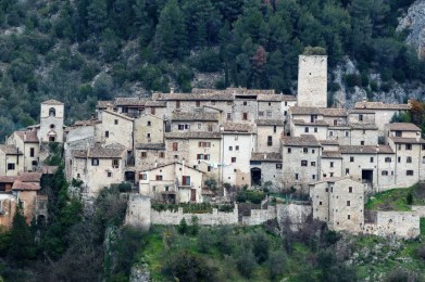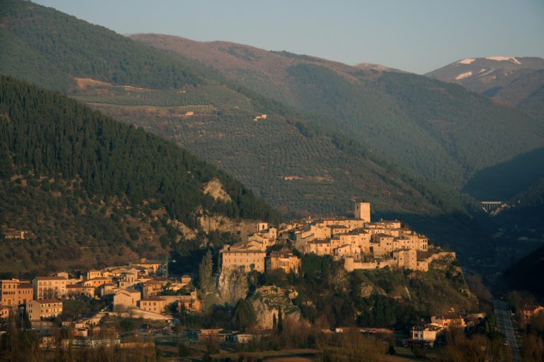The village retains intact its medieval urban layout of cobblestone alleys, stone arches, underpasses and white limestone houses. Strolling through the steep streets, one encounters charming corners, such as the Church of St. Valentine, leaning against the rock, with its 16th-century portal and frescoed lunette with the Madonna and Child, or the Church of St. Nicholas, embellished with frescoes of the Spoleto school.