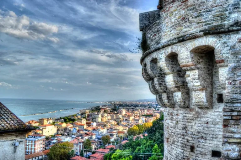 The Torrione della Battaglia is a historic fortification located in Grottammare, which dates back to the 16th century and is part of the town’s medieval defense system. Built between 1540 and 1550 by Lombard and local craftsmen, the keep stands near the “Marina” gate, strategically positioned overlooking the sea and the ancient harbor. Its cylindrical structure, with a semicircular base, features trefoil barbacans and a parapet decorated with rounded battlements. Its name, which translates to “soldiers’ tower,” reflects the protective role it played against pirate threats, a constant problem for coastal resorts until a few centuries ago. Today, after restoration in the early 21st century, the Torrione houses the Torrione della Battaglia Museum, dedicated to the works of sculptor Pericle Fazzini.