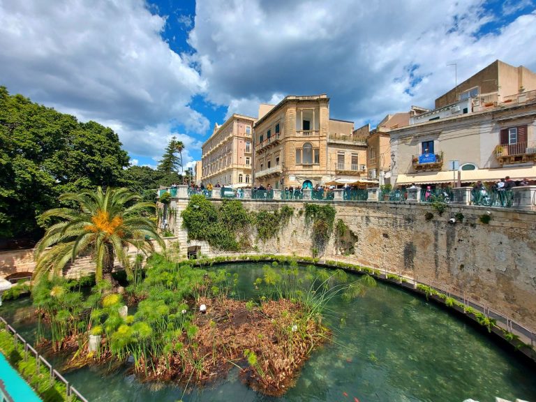 Fonte Aretusa is a body of water located on the island of Ortigia, in the ancient heart of the city of Syracuse, Sicily. This spring has deep roots in both history and Greek mythology and is one of the city’s main tourist attractions.
